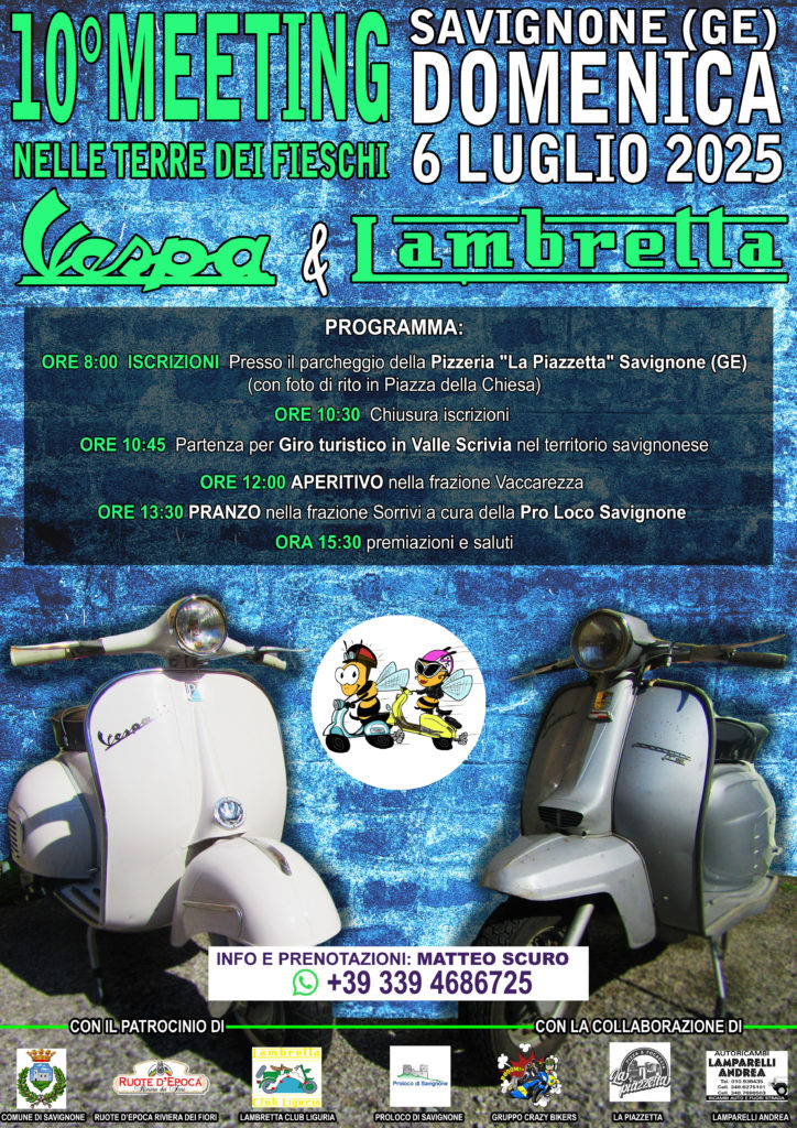 Domenica 6 Luglio 2025 – 10° Meeting Vespe & Lambrette Savignone (GE)