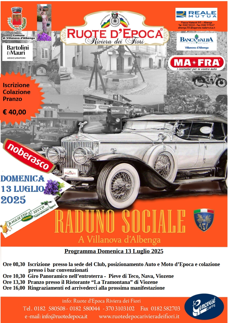 Domenica 13 Luglio 2025 – Raduno Sociale del Club Ruote d’Epoca Riviera dei Fiori