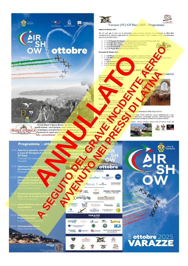 ANNULLATO – 04-05 Ottobre – GP Days a Varazze (SV)- ANNULLATO Posted at h in Manifestazioni, News by 0 Likes ATTENZIONE IL GP DAYS PREVISTO PER IL 05 OTTOBRE A VARAZZE E’ STATO ANNULLATO